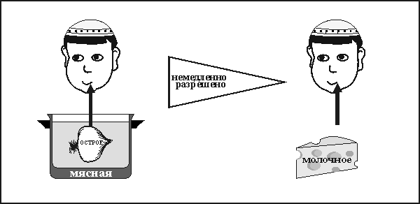 Что произойдет, если сварить "дающий вкус" (1,2 или 3 порядка) с противоположным продуктом (например, взять "дающий молочный вкус" и сварить его с мясом).Обратите внимание, что дающие вкус 1-го и 3-го порядка - всегда посуда,а дающий вкус 2-го порядка - всегда продукт. Далее будут разъяснены различные случаи смешения "противоположных " продуктов, дающих, вкус 2-го порядка (как, например, дающий молочный вкус 2-го порядка с мясом и наоборот - дающий мясной вкус 2-го порядка, с молоком.)