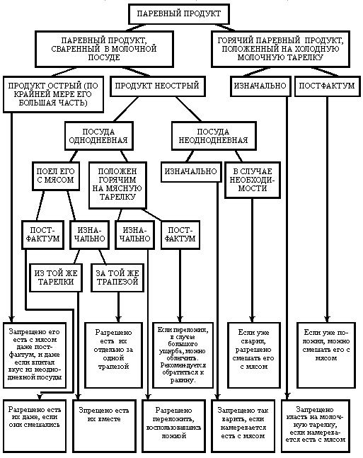 Острый продукт, сваренный в молочной посуде, становится молочным и находится в статусе продукта, дающего вкус первого порядка, и поэтому: