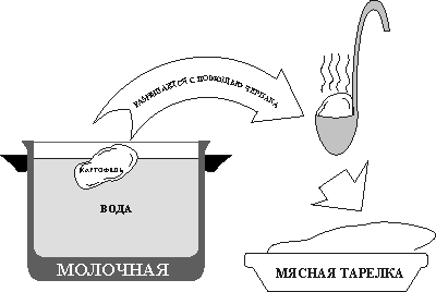 ПРИМЕЧАНИЕ: Картофель и вода, в которой он варился, считается одним блюдом, и не следует считать, что вкус от кастрюли сначала впитался в воду, а от нее перешел в картофель. Переход вкуса от продукта к продукту не считается дополнительной ступенью передачи вкуса. Как сказано выше, дополнительная ступень появляется только при обмене вкусом между посудой и продуктом.