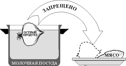 Причиной запрета, приведенного в пункте 2), является то, что острый продукт восстанавливает "испорченный" в неоднодневной посуде передаваемый ею вкус, и превращает его в свежий, и таким образом посуда становится одноднев ной.