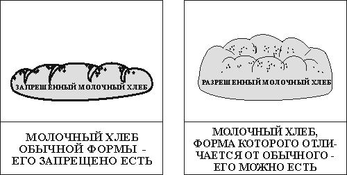 Если же ДО ВЫПЕЧКИ сделать хлеб такой формы, что он совершенно отличался от всех других хлебов или обычных булочек, и, увидев его, каждому будет ясно, что это не обычный хлеб, мудрецы разрешили его есть. Вместе с тем, молочный или мясной хлеб не станет разрешенным, если сделать на нем какой-то отличительный знак ПОСЛЕ ВЫПЕЧКИ , так как запрещенным он стал еще в момент выпечки.